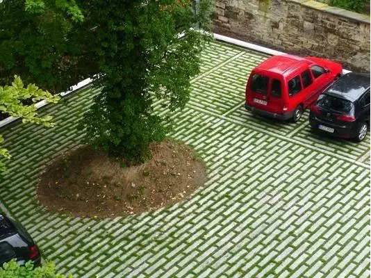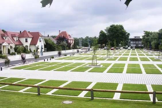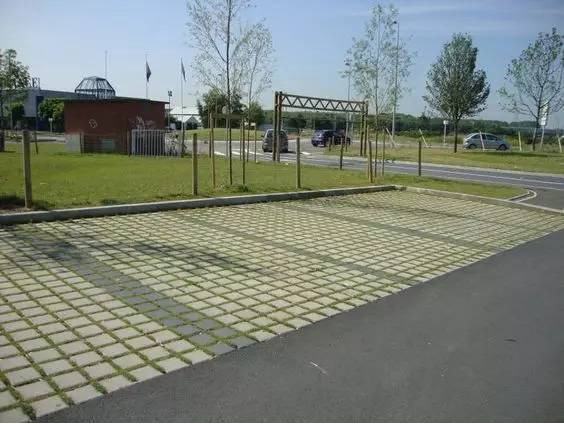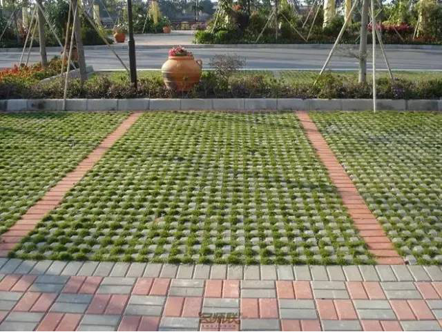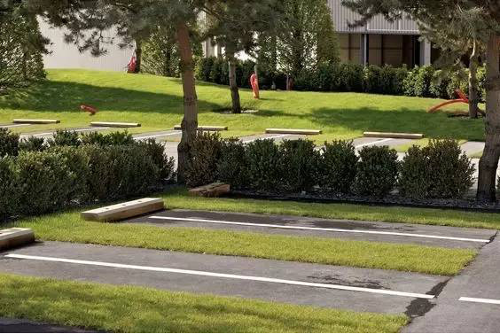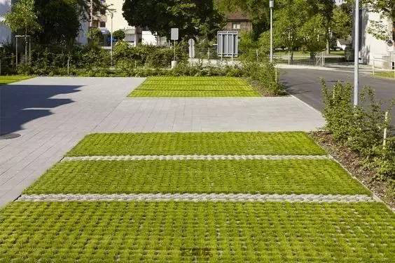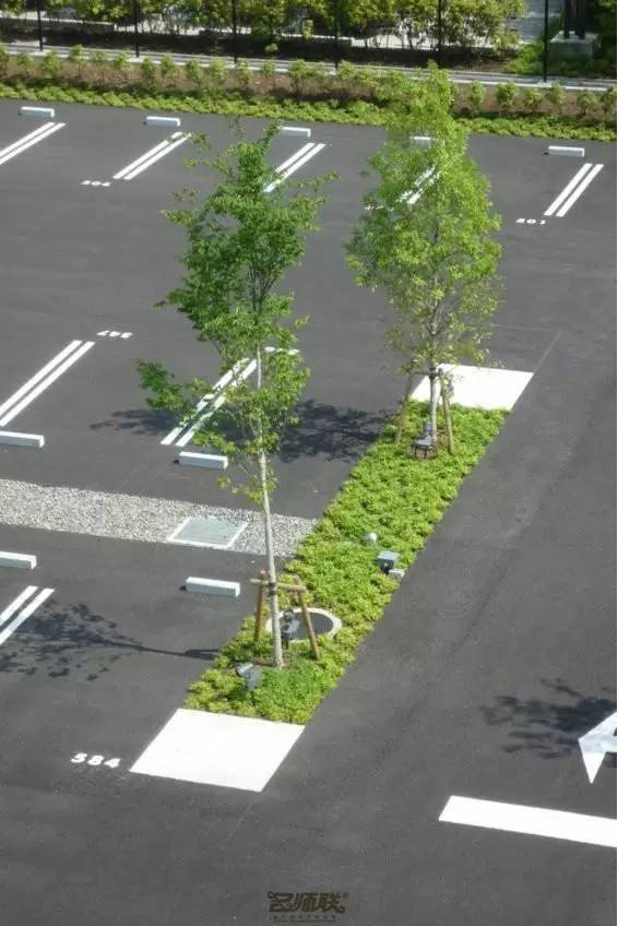 利于更換及修補(bǔ)的防滑鋪裝材料,以及它的透水性,加上鋪設(shè)尺寸符合人體工程學(xué),真是人性、環(huán)保、安全而美觀。而停車場周圍的綠植,起到降溫作用,視覺上也美化了場景,愉悅內(nèi)心,安全出行,再好不過。