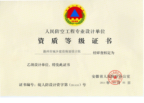 經(jīng)過建筑室、辦公室和總師室的共同努力,我院申報的人防工程設(shè)計乙級資質(zhì),于2014年5月5日獲得安徽省人民防空辦公室批準,這標志著我院可以承擔(dān)本省范圍內(nèi)2萬平方米以下人防工程建設(shè)項目(不含各類人防指揮所、專業(yè)隊工程、醫(yī)療救護工程、一等人員掩蔽部)主體工程、配套工程及地面附屬設(shè)備設(shè)施用房的設(shè)計業(yè)務(wù)。