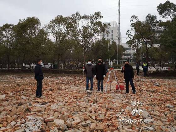 2月3日,我院再次接到市重點工程管理處的緊急任務(wù),由我院測量隊承擔(dān)市新型冠狀病毒肺炎定點收治備用醫(yī)院三期場地的地形圖及土方測繪工作。疫情就是命令,測量隊隊員們聞令而動,紛紛請戰(zhàn)。由副隊長蔣蔚、主任工程師梁發(fā)軍帶領(lǐng)5名隊員,帶著測繪工具,不顧場地泥濘,于2月4日上午八點半準時到達現(xiàn)場,立即開展工作,并于當(dāng)日完成了測量數(shù)據(jù)采集、傳輸、整理和制圖工作,為備用醫(yī)院三期建設(shè)提供了詳實的第一手基礎(chǔ)資料。